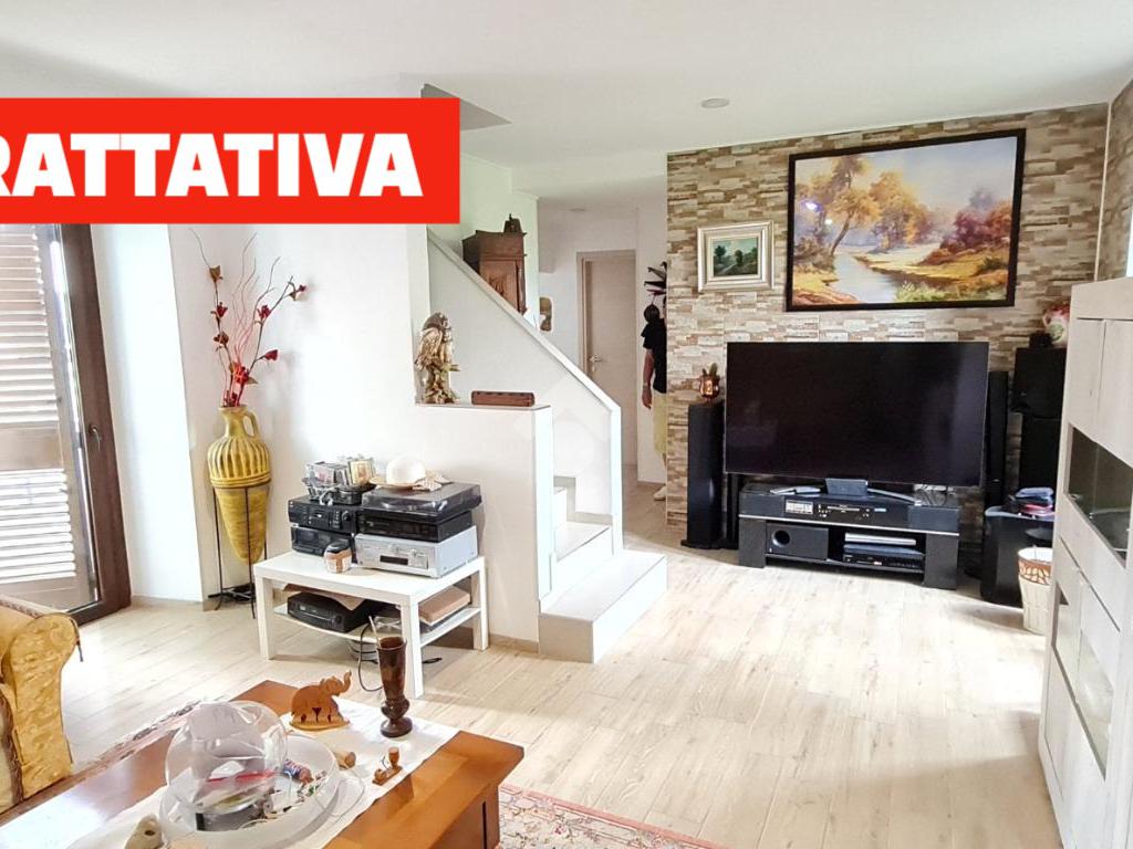 Brusaporto, zona residenziale periferica e tranquilla, proponiamo un appartamento TRILOCALE, disposto SU DUE LIVELLI, di circa 120 mq. totali, composto da :